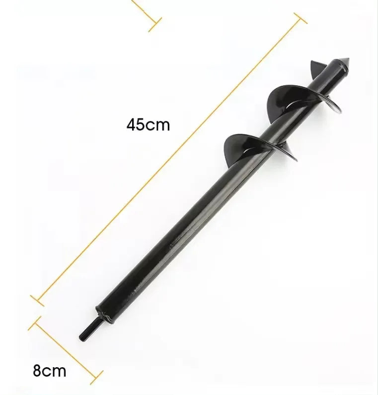 Gör planteringen snabbare och enklare med vår kraftiga jordborr för skruvdragare. Den spiralformade borren skär effektivt genom jord, sand och lättare lerjord och skapar perfekta hål på bara några sekunder.